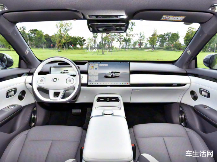 座舱采用环抱式布局,所有边角均做圆润处理,配合“0甲醛座舱”环保材料,对有孩童的家庭更友好。中控台分层设计清晰,上层双手机平台支持50W无线快充(入门版除外),下层镂空区域可放随身包,数智大白智控旋钮支持盲操作减少分心。