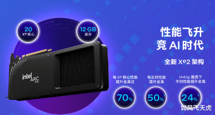 在2K价位 ,英特尔的显卡其实还是很不错的。像锐炫B580是英特尔推出的Xe2架构独立显卡,它支持光线追踪和XeSS 2技术,游戏性能在2K分辨率下表现抢眼。采用Xe2架构,相比前代性能提升70%,能耗比优化50%。配备20个Xe核心、160个XMX矩阵引擎和20个光线追踪单元,支持AI加速任务,配备12GB GDDR6大显存,无论是生产力还是游戏均有优势,同价位的显卡通常仅8GB内存。