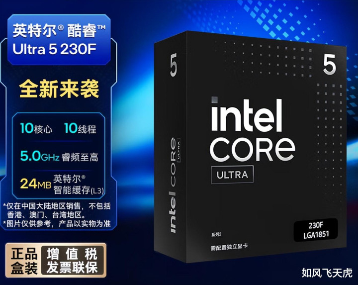 CPU选择了英特尔酷睿 Ultra 5 230F,这款中国特供版CPU基于最新Arrow Lake-S架构,采用6P+4E共10核10线程设计,三级缓存 24MB,TDP 65W。P核基础频率3.4GHz、最大睿频5.0GHz,E核基础2.9GHz、最大 4.4GHz。 性能强、三级缓存多、功耗低,性能强。无论是玩游戏还是生产力,均可以满足日常的要求。