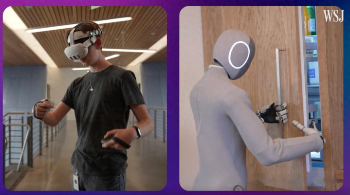 相当于这个机器人配备了一个人类傀儡师,而这个人类用VR头显在操控它。